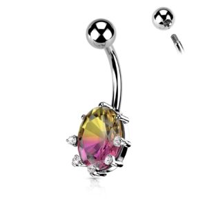 Rainbow Effect Prong Set Oval Crystal